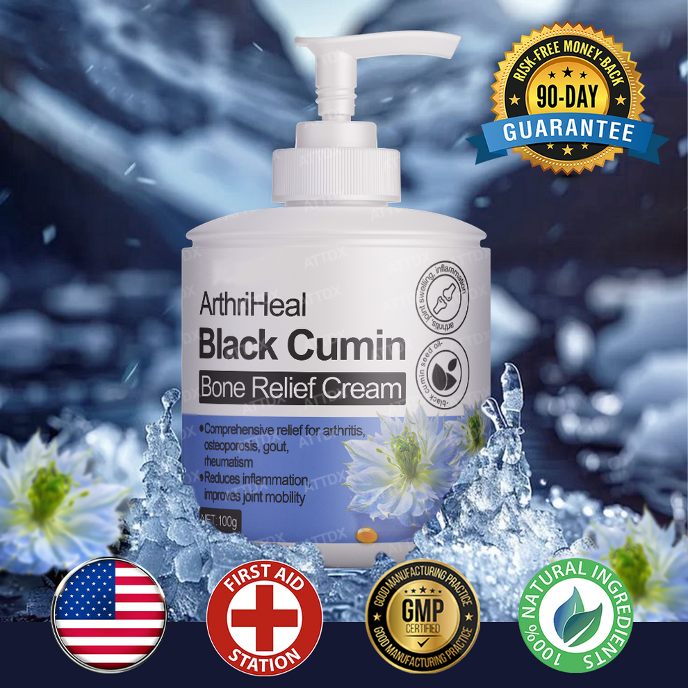 ArthriHeal Black Cumin Bone Relief Cream features black cumin seed oil that is rich in thymoquinone and nigellidine. Thymoquinone helps reduce inflammation by blocking enzymes that contribute to swelling and pain, promoting better circulation to affected joints.